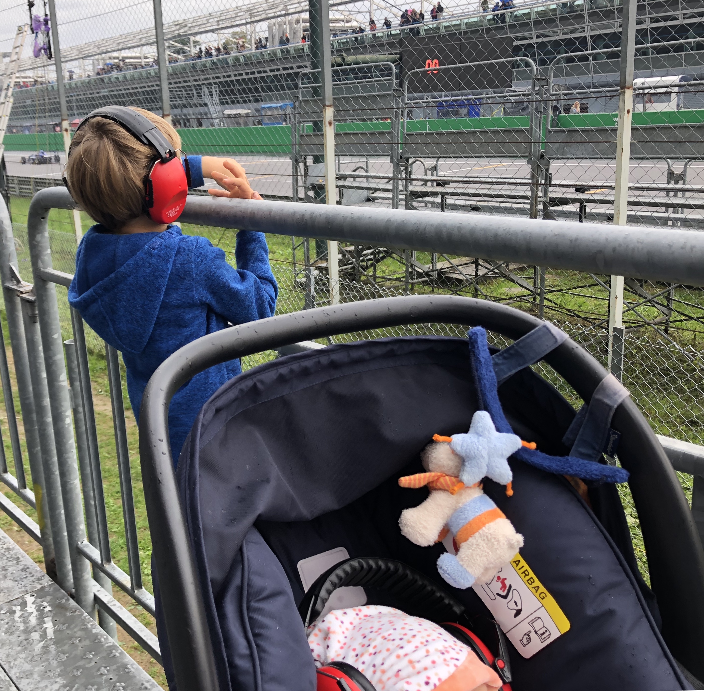 Nel pomeriggio la pioggia rende tutto difficile: cerchiamo di vedere le gare e di ripararci dall’acqua. Perchè va bene essere tifosi, ma siamo pur sempre piccoli. Porsche Cup, GT, F4 e Formula Regional una dietro l’altra! Un’indigestione di partenze, sorpassi, bandiere a scacchi e podi. Così scopriamo l’altro momento bellissimo: la partenza! Il rettilineo di Monza ha i sedili coperti e diventa il ritrovo di tutti i tifosi zuppi per cui ci godiamo tutte le partenze da vicino. Scoprendo anche che a 5 anni guardare la pista è più difficile del previsto.
